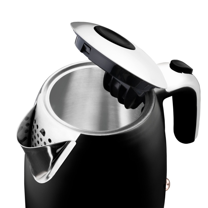 Materiał: wew. stal nierdzewna, zew. tworzywo sztuczne Pojemność: 1,7 l Napięcie: 220-240 V, 50/60 Hz Moc: 2200W Podstawka obrotowa 360° Kolor: czarny mat Kolekcja: Matte Black - Rose Gold