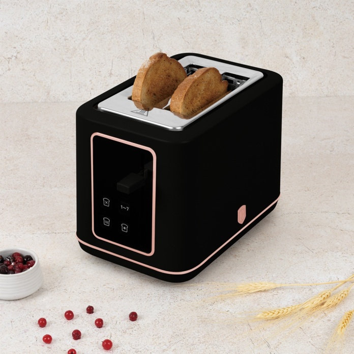 Elegancki cyfrowy toster w kolorze czarnego matu to połączenie nowoczesnego designu i funkcjonalności, który doskonale uzupełni każdą kuchnię.