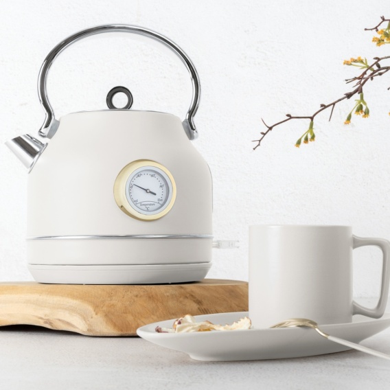 Zbiornik o pojemność 1,7 litrów. Wykończenie w kolorze matowym kremowym sprawi, że czajnik świetnie wkomponuje się we wnętrze Twojej kuchni.