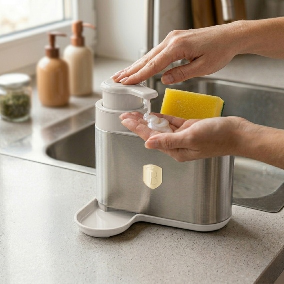 Funkcjonalny dozownik BerlingerHaus to praktyczne i stylowe rozwiązanie do kuchni, które ułatwia codzienne mycie naczyń.