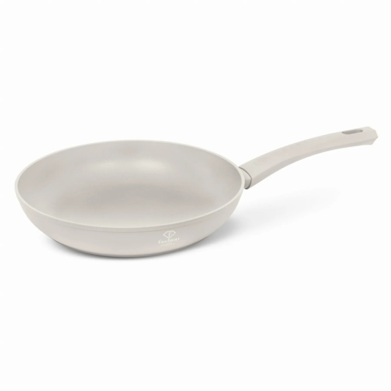 Materiał: Kute aluminium Powłoka: Nieprzywierająca, titanPro Wymiary: Ø28 x 5,2 cm Pojemność: 2,4L Kolor: Matowy krem ze złotymi dodatkami Kolekcja: Matte Cream Gold Collection