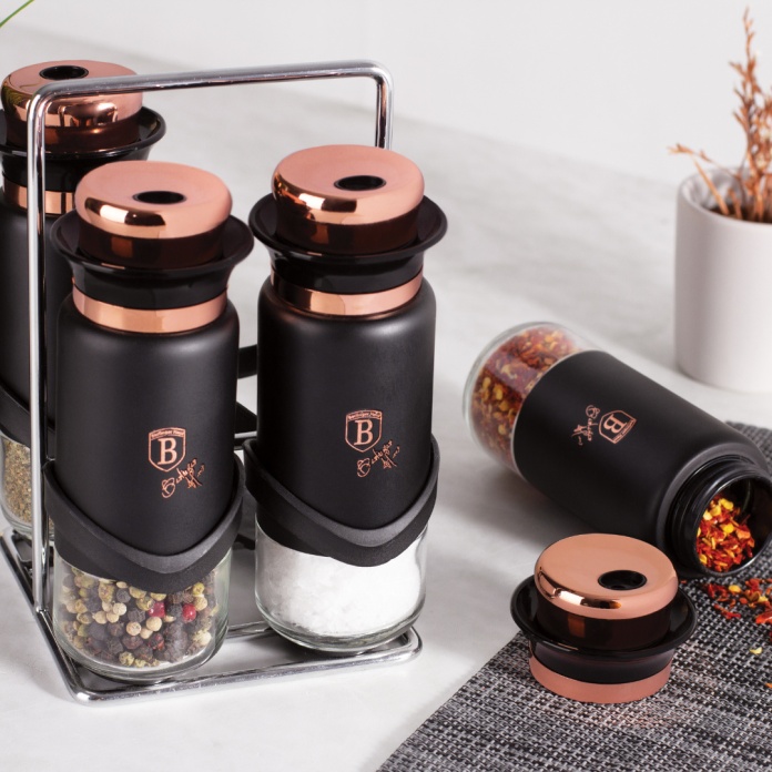 Przyprawnik marki Berlinger Haus z kolekcji Black Rose to doskonały wybór, jeżeli zależy nam również na estetyce oraz designie.